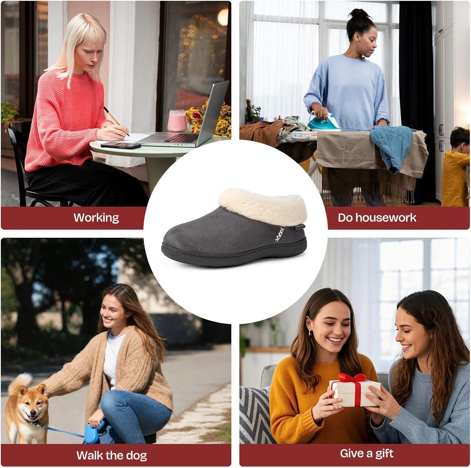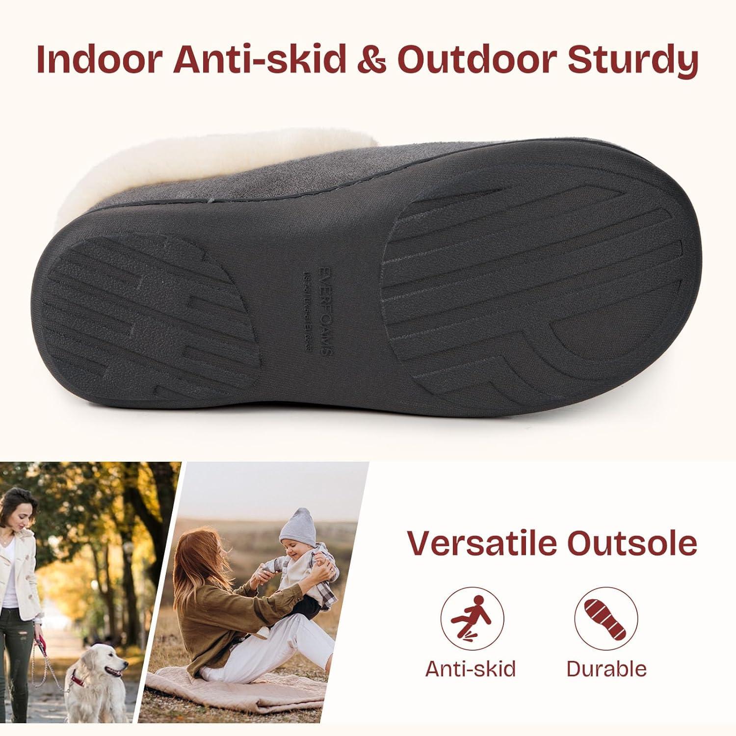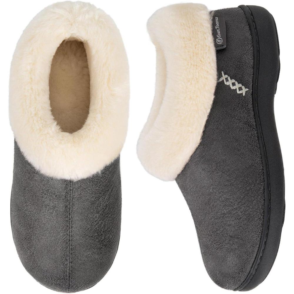 EverFoams Women’s Microsuede Cozy Memory Foam Winter Slippers with Fuzzy Faux Fur Collar and Indoor Outdoor Rubber Sole(Grey)