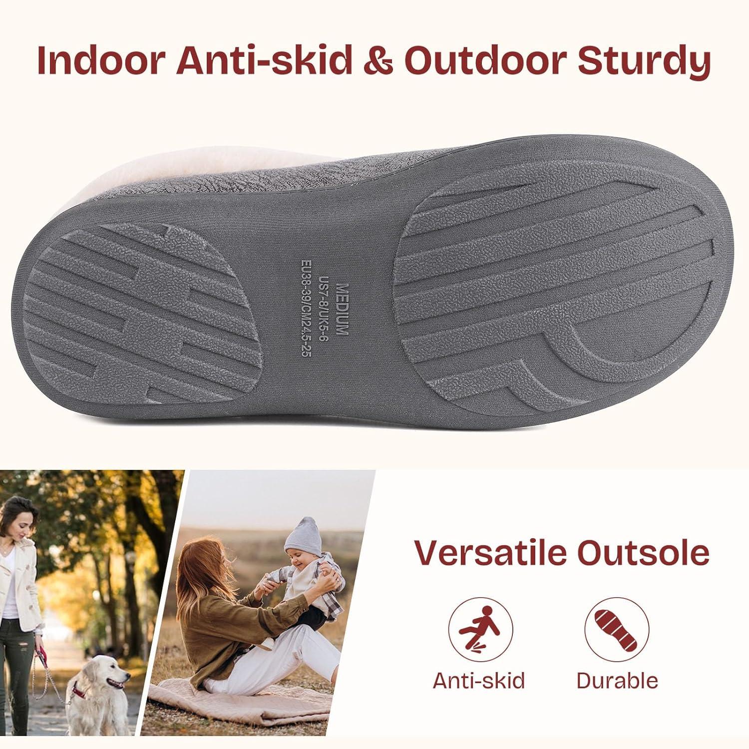 EverFoams Women’s Microsuede Cozy Memory Foam Winter Slippers with Fuzzy Faux Fur Collar and Indoor Outdoor Rubber Sole(Grey)